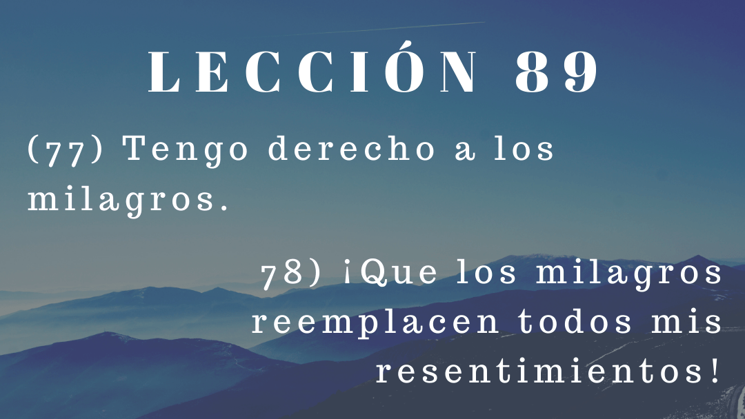 Tengo derecho a los milagros porque no me gobiernan otras leyes que las de Dios. Sus leyes me liberan de todos mis resentimientos y los reemplazan con milagros. Voy a aceptar los milagros en lugar de los resentimientos, los cuales no son sino ilusiones que ocultan los milagros que se encuentran tras ellos. Voy a aceptar ahora solamente aquello a lo que las leyes de Dios me dan derecho, de manera que pueda usarlo en beneficio de la función que Él me ha dado.