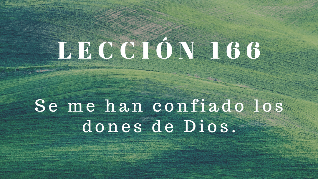Los dones de Dios te pertenecen, y se te han confiado para que se los des a todos aquellos que eligen recorrer el solitario camino del que tú te has escapado. Ellos no entienden que lo único que están haciendo es ir en pos de sus deseos. Ahora eres tú quien les tiene que enseñar. Pues has aprendido de Cristo que hay otro camino que pueden recorrer. Les puedes enseñar esto demostrándoles la felicidad que colma a aquellos que sienten el toque de Cristo y que reconocen los dones de Dios. No permitas que tus pesares te tienten a no ser fiel a tu cometido.