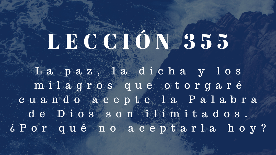 ¿Por qué debo esperar, Padre mío, para recibir la dicha que Tú me prometiste? Pues Tú mantendrás Tu Palabra, que le diste a Tu Hijo en el exilio. Estoy seguro de que mi tesoro me aguarda y de que sólo tengo que extender la mano para encontrarlo. Incluso ahora mismo mis dedos ya lo están tocando. Está muy cerca. No es necesario que espere ni un instante más para estar en paz para siempre. Es a Ti a Quien elijo, y a mi Identidad junto Contigo. Tu Hijo quiere ser él mismo, y reconocerte como su Padre y Creador, así como su Amor.
