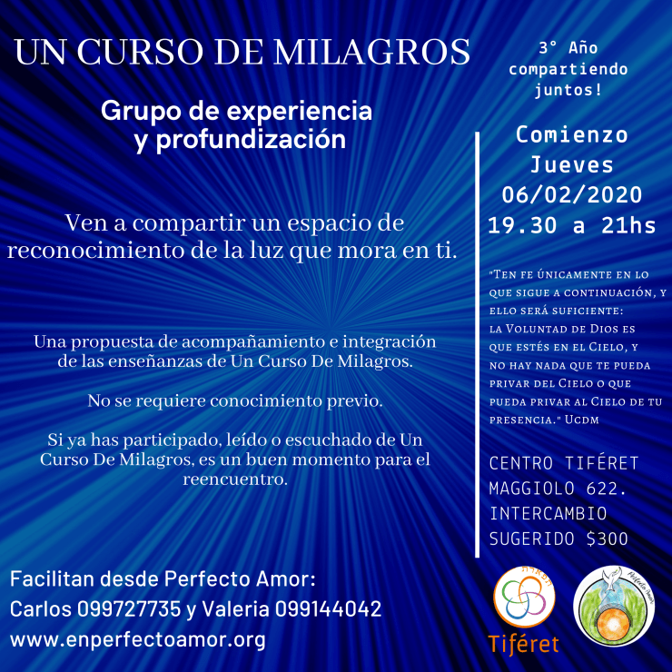 Un Curso de MilagrosGrupo de Experiencia y Profundización en Ucdm! Comienzo 06/02/2020, Montevideo, Uruguay. Comparte esto:Tweet Haz clic para compartir en WhatsApp (Se abre en una ventana nueva) WhatsApp Haz clic para compartir en Telegram (Se abre en una ventana nueva) Telegram Pocket Haz clic para enviar un enlace por correo electrónico a un amigo (Se abre en una ventana nueva) Correo electrónico Compartir en TumblrMás Haz clic para compartir en Reddit (Se abre en una ventana nueva) Reddit Me gusta Cargando... Relacionado