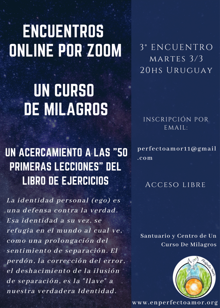 Un Curso de Milagros3° Encuentro online Ucdm! Juntos, vamos a recordar nuestra verdadera Identidad! Todos invitados! Comparte esto:Tweet Haz clic para compartir en WhatsApp (Se abre en una ventana nueva) WhatsApp Haz clic para compartir en Telegram (Se abre en una ventana nueva) Telegram Pocket Haz clic para enviar un enlace por correo electrónico a un amigo (Se abre en una ventana nueva) Correo electrónico Compartir en TumblrMás Haz clic para compartir en Reddit (Se abre en una ventana nueva) Reddit Me gusta Cargando... Relacionado