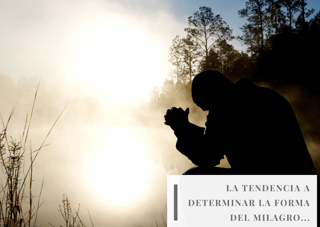 Sin embargo, como hemos mencionado anteriormente, llega el momento en que Dios tiene que entrar en escena, pues se ha llegado a un punto crítico de pérdida de control. Aún en este momento, debemos mantener el alerta a querer seguir controlando, pues la tendencia a medir y controlar se expresa aquí, en función de si se cumple o no lo que se ha solicitado en oración. Es decir, en muchas ocasiones, en base a lo que creemos que nos aportaría felicidad o seguridad, se realiza una petición a Dios, y si tal petición se cumple «milagro», si no se cumple, no hay «milagro». Evidentemente no hemos abandonado la perspectiva errónea, pues no solamente se le indica a Dios que es lo que tiene que suceder (en vez de preguntar por su Guía), sino que también, si no sucede lo que hemos juzgado «correcto o bueno», es que no hemos recibido respuesta.