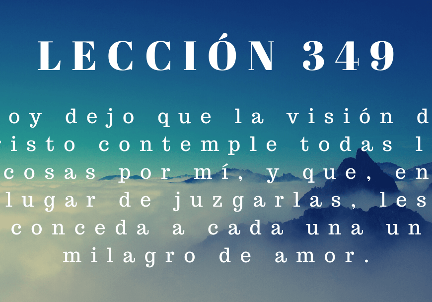 Comentario: Comienza a ver todas las cosas con gratitud, pues se te ha concedido poder ver más allá del sueño que has fabricado, y con ello, salir de la prisión en la que creíste estar encerrado. Eres libre, aún en sueños, sin embargo, la creencia en el miedo y la separación te han vuelto un esclavo de algo que no existe y que tú mismo has puesto ahí. Se libre y deja de creer en ello, y piensa con tu Maestro el pensamiento que te devolverá la conciencia de tu libertad. Continúa leyendo LECCIÓN 349. Hoy dejo que la visión de Cristo contemple todas las cosas por mí, y que, en lugar de juzgarlas, les conceda a cada una un milagro de amor.