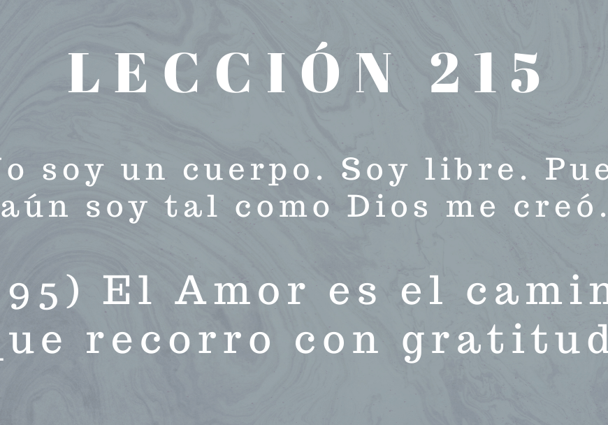 Comentario: Confía plenamente en la guía que se te ofrece, pues ella proviene de Aquel que te ama totalmente. No temas no saber cómo, sólo dedícate a entregar tus metas y tus creencias, poniendo así tu voluntad a disposición de tu Guía, para que éste la armonice con la Voluntad del Padre. Continúa leyendo LECCIÓN 227. Éste es el instante santo de mi liberación.