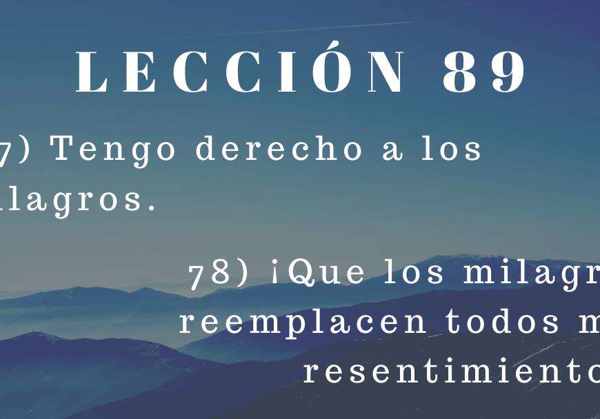 (77) Tengo derecho a los milagros. Tengo derecho a los milagros porque no me gobiernan otras leyes que las de Dios. Sus leyes me liberan de todos mis resentimientos y los reemplazan con milagros. Voy a aceptar los milagros en lugar de los resentimientos, los cuales no son sino ilusiones que ocultan los milagros que se encuentran tras ellos. Voy a aceptar ahora solamente aquello … Continúa leyendo LECCIÓN 89. Repaso de las lecciones 77 – 78
